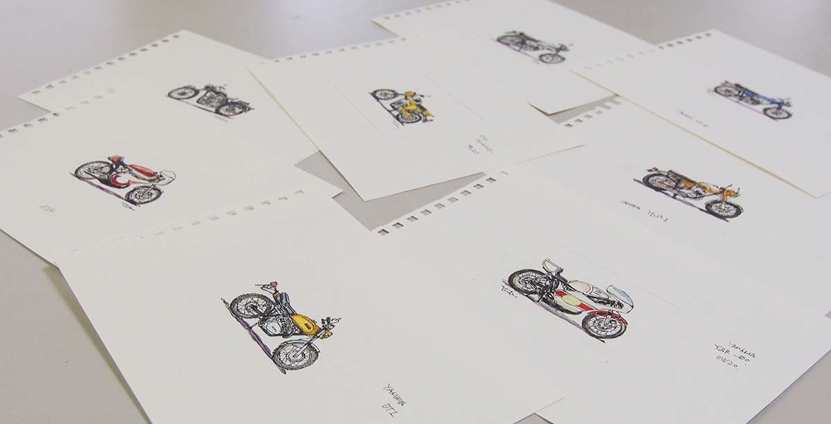 絵としてはバイクの方が描いていて楽しいですね。特にロードレーサーのカウルを外した、エンジン部のメカ剥き出しのものは写真を見てるだけでもワクワクしますが、それを描くのもまた没頭できて楽しいです。
