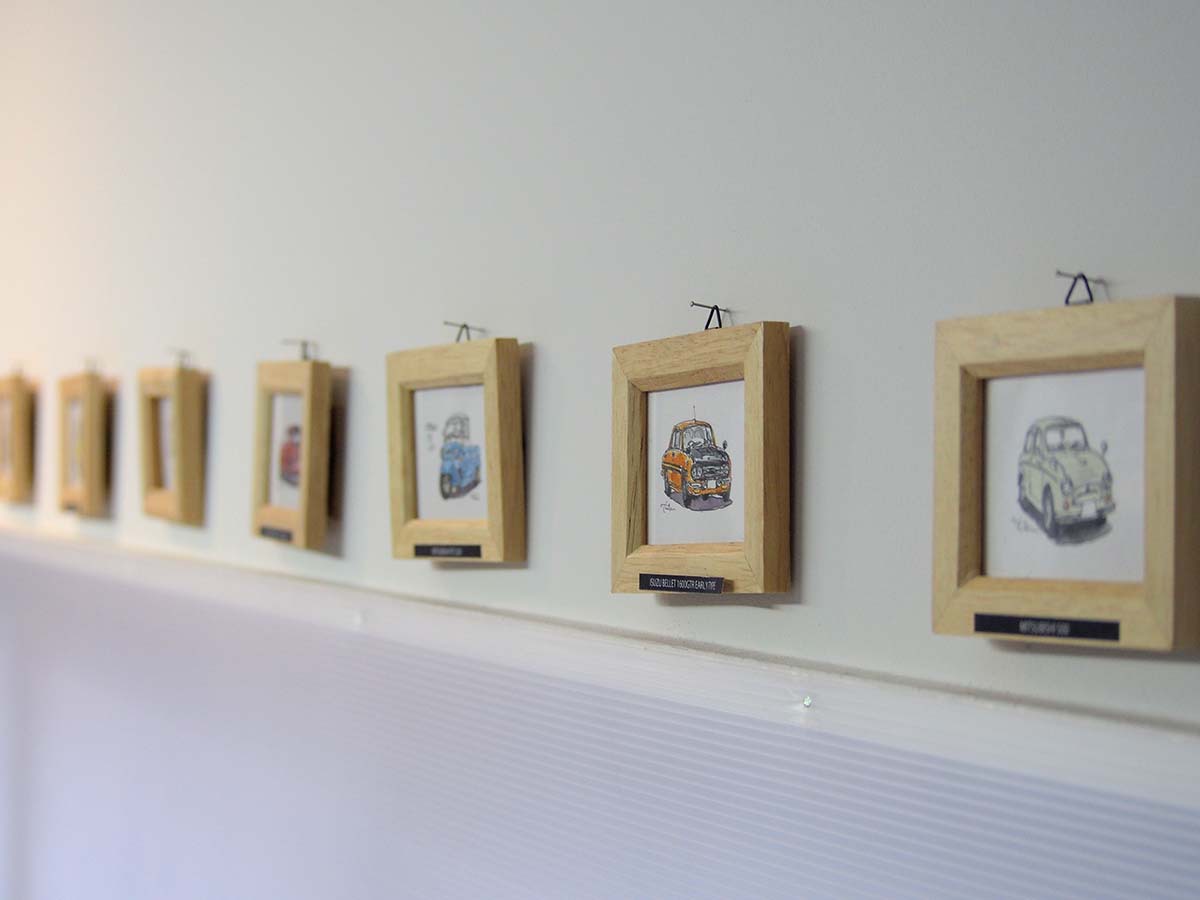 最初は好きなバイクと車の中でも、働く小さい車をテーマに。軽四とその前のオート三輪などを描いていました。学生の頃に憧れてたイラストレーターは佐々木悟郎、池田和弘、ペーター佐藤。中でも佐々木悟郎のようなタッチは何度も挑戦したものの格好にならなかったので、今度こそはとじっくり取り組むことに。しかしながら、なかなかああいうふうには描けませんなぁ。